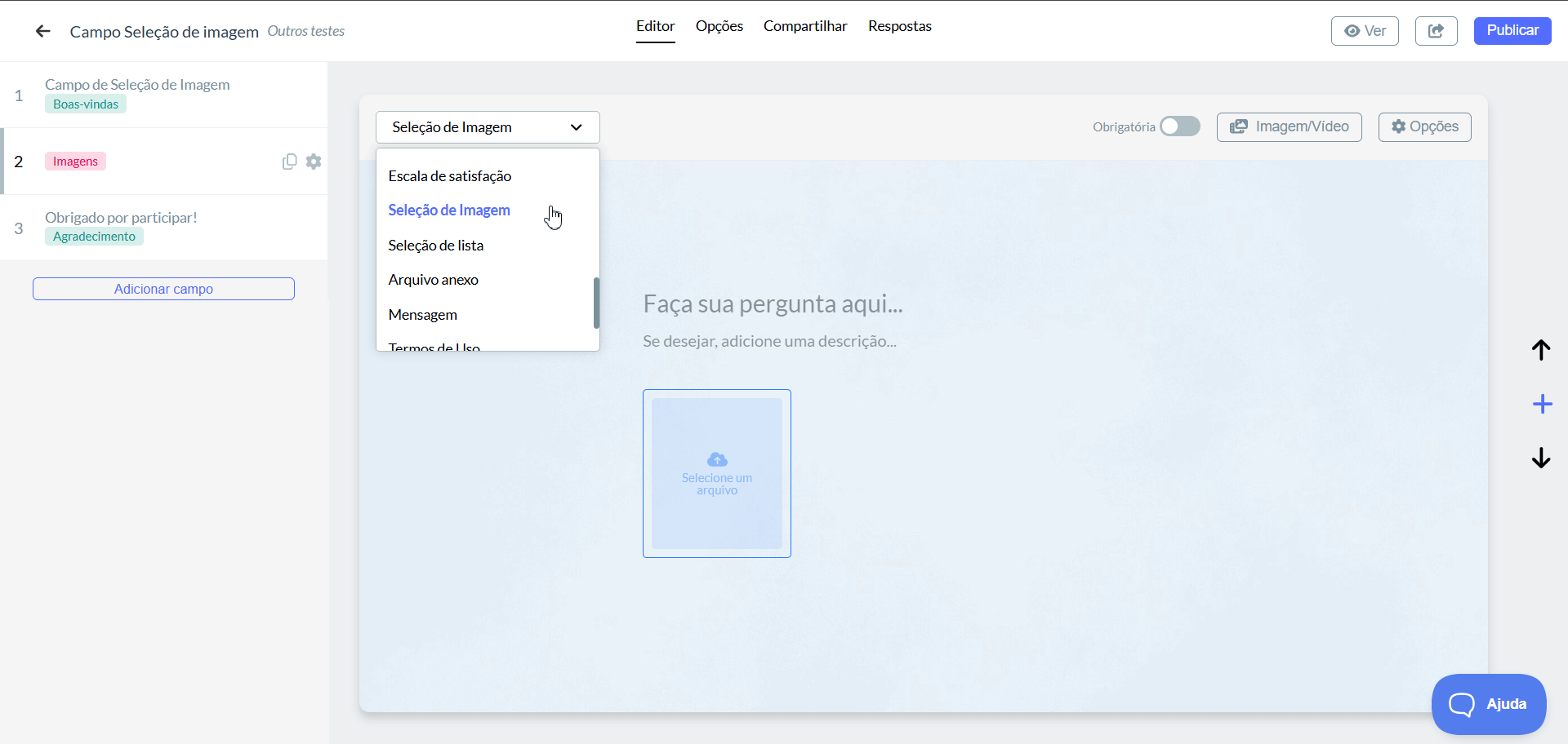 - Selecione o campo tipo "Seleção de Imagem";