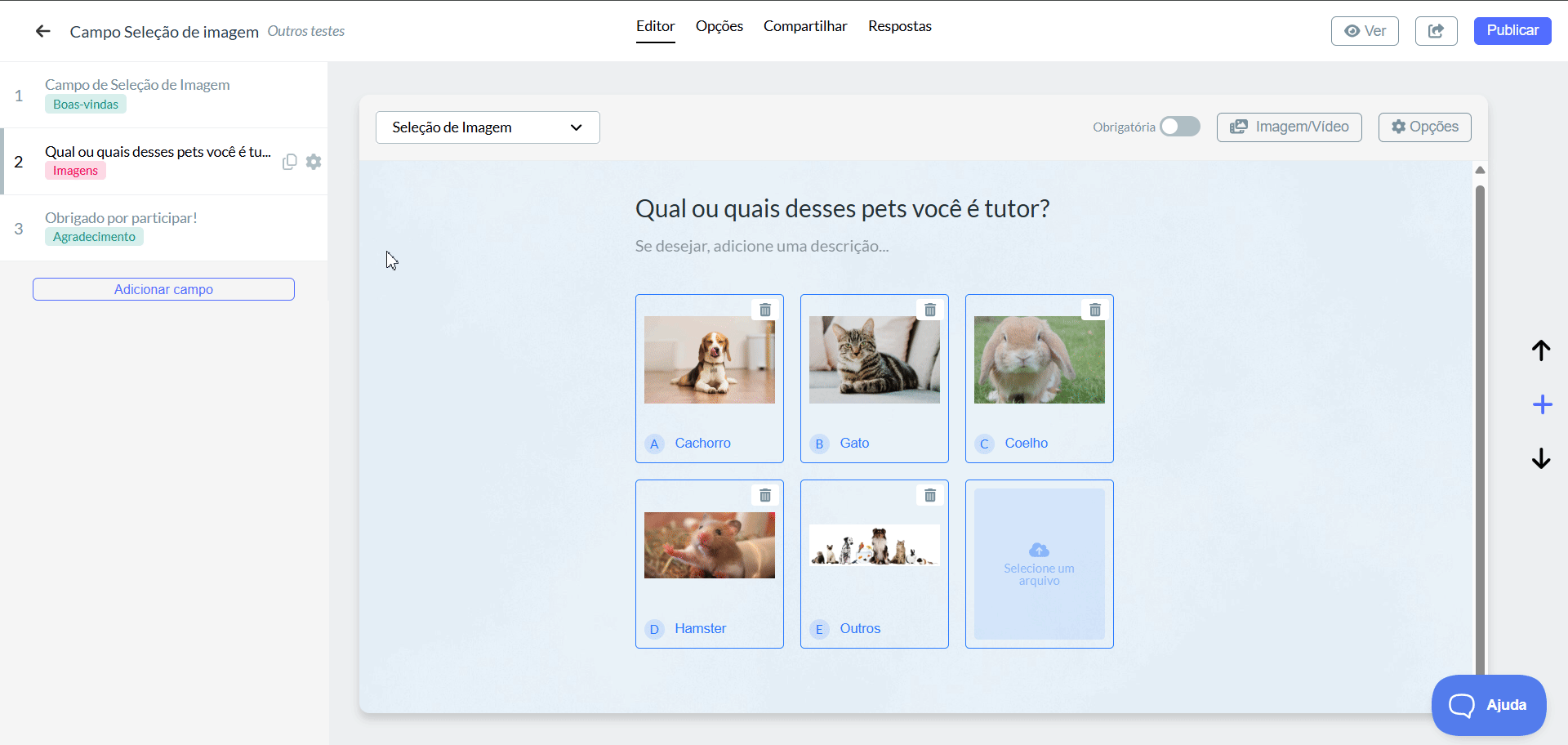 Insira imagens como opções de pergunta