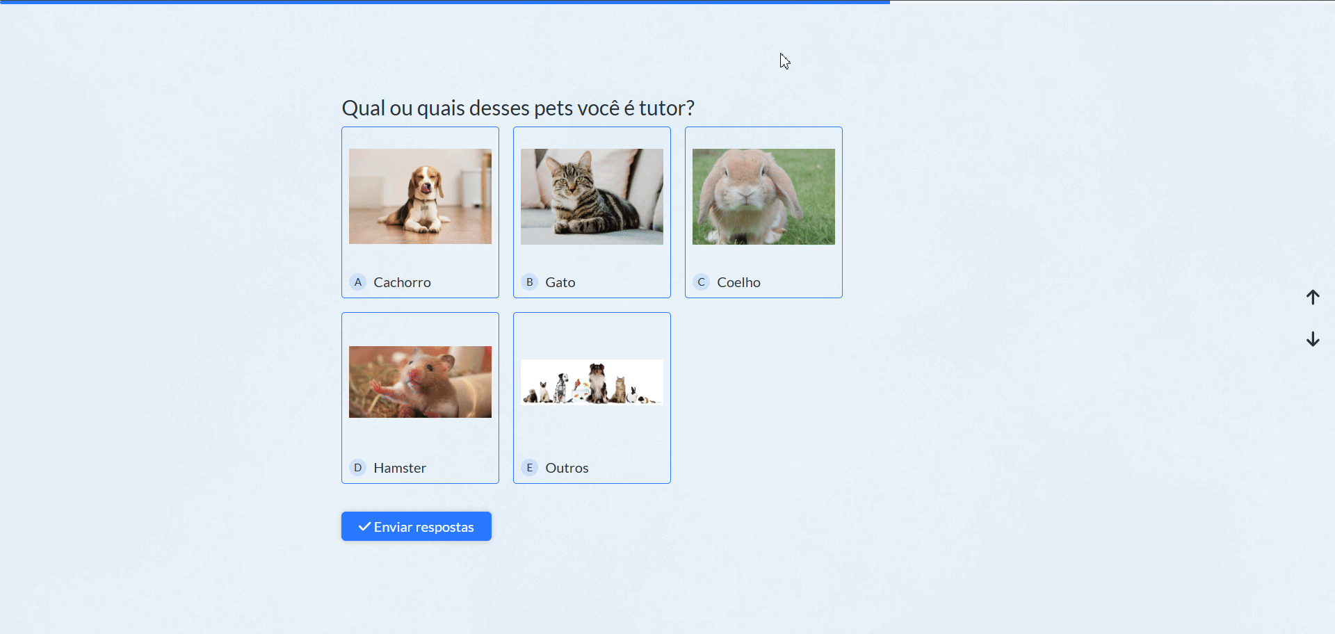 A pessoa que estiver respondendo o formulário terá as opções de imagem como resposta, e se você habilitar a opção de “Múltipla seleção”, permitirá que a pessoa escolha mais de uma alternativa como resposta 🙂