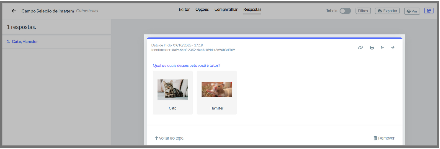 Veja como as imagens são exibidas para o dono do formulário