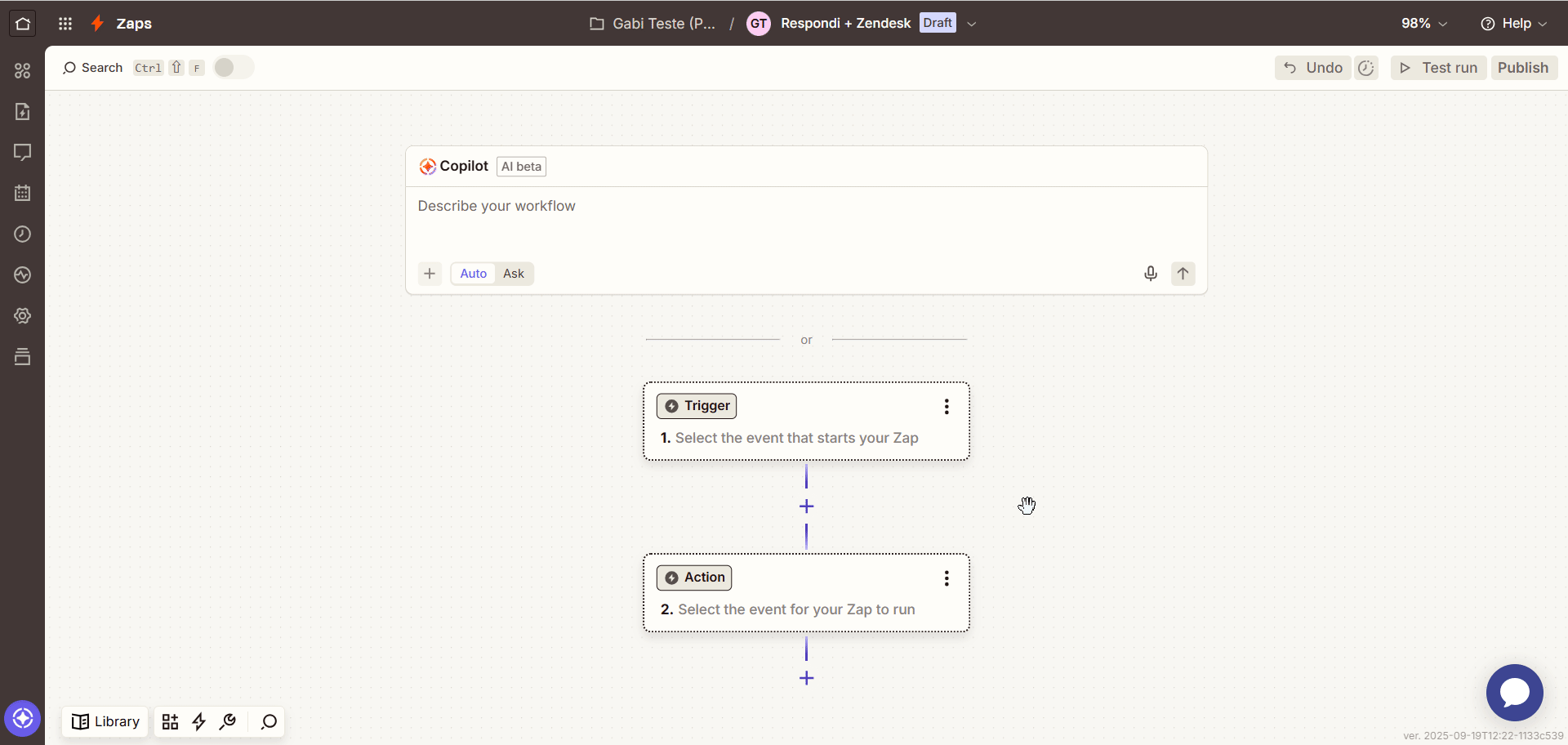Após criar um novo Zap na sua conta do Zapier, siga os passos abaixo: