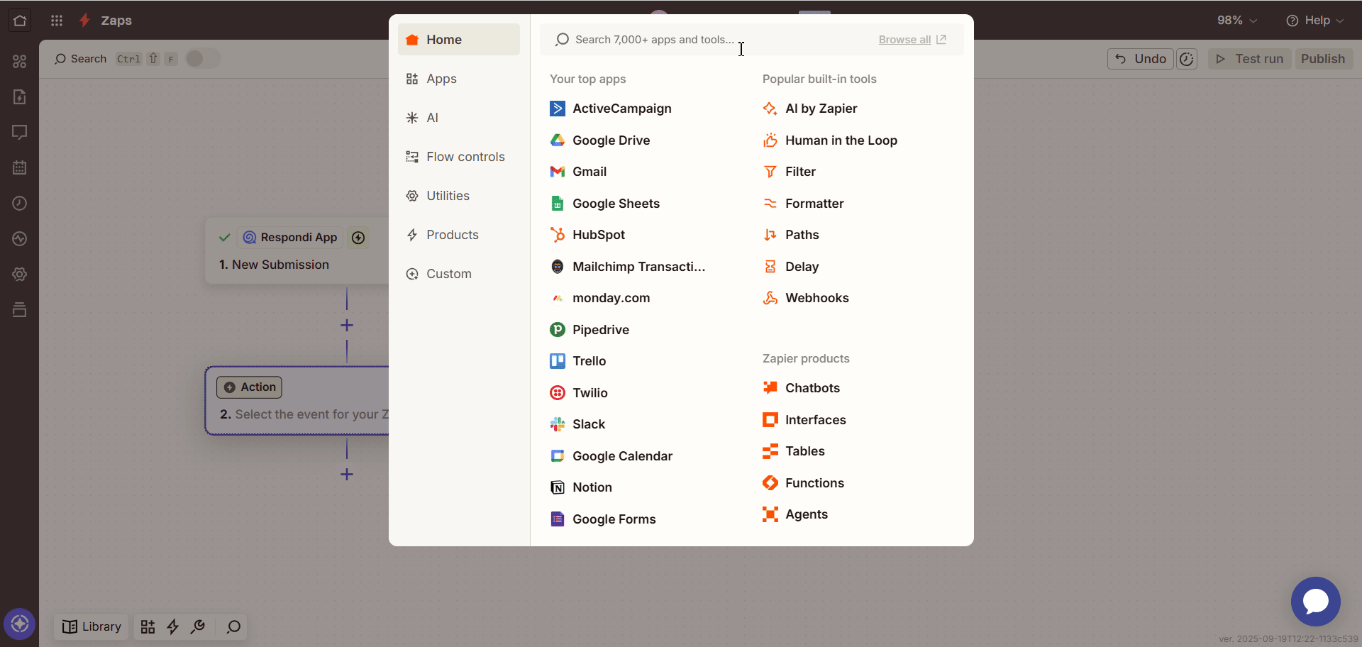 - Escolha o Respondi App como "Trigger" (gatilho);
