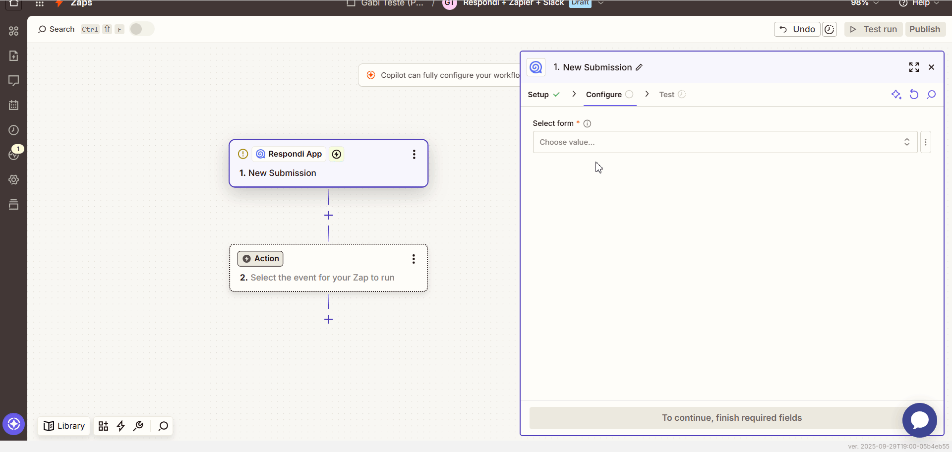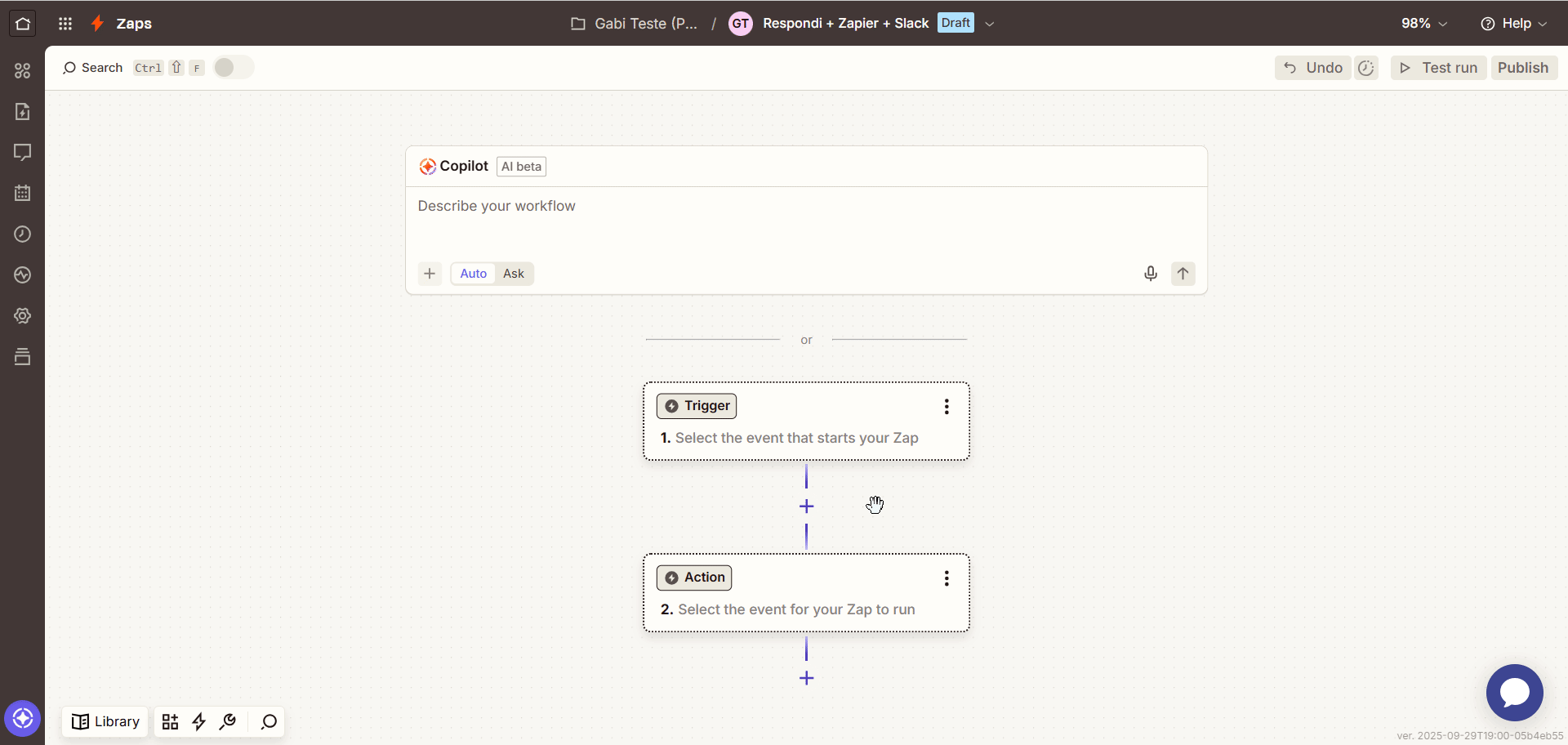 Após criar um novo Zap na sua conta do Zapier, siga os passos abaixo: