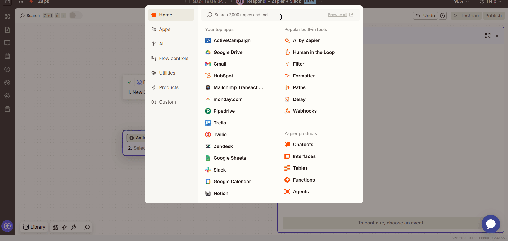 - Se o teste deu certo, volte no Zapier e clique em "Publish" para ativar a integração! 😉
