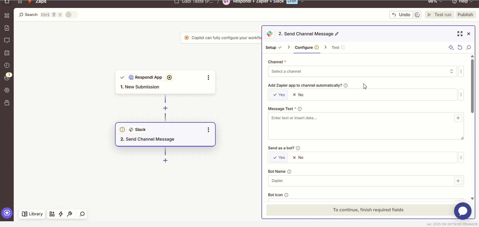 Com a integração nativa entre o Respondi e o Zapier, você pode criar automaticamente novas mensagens no Slack a partir das respostas recebidas em seu formulário!