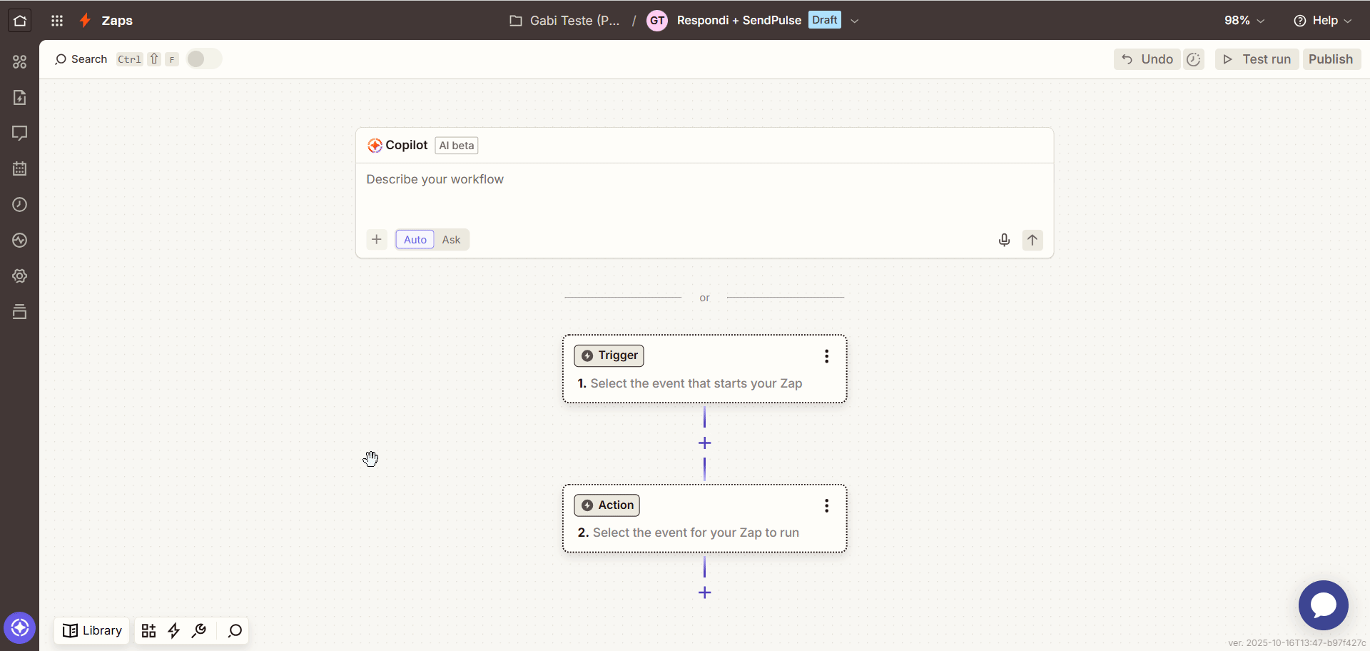 Após criar um novo Zap na sua conta do Zapier, siga os passos abaixo:
