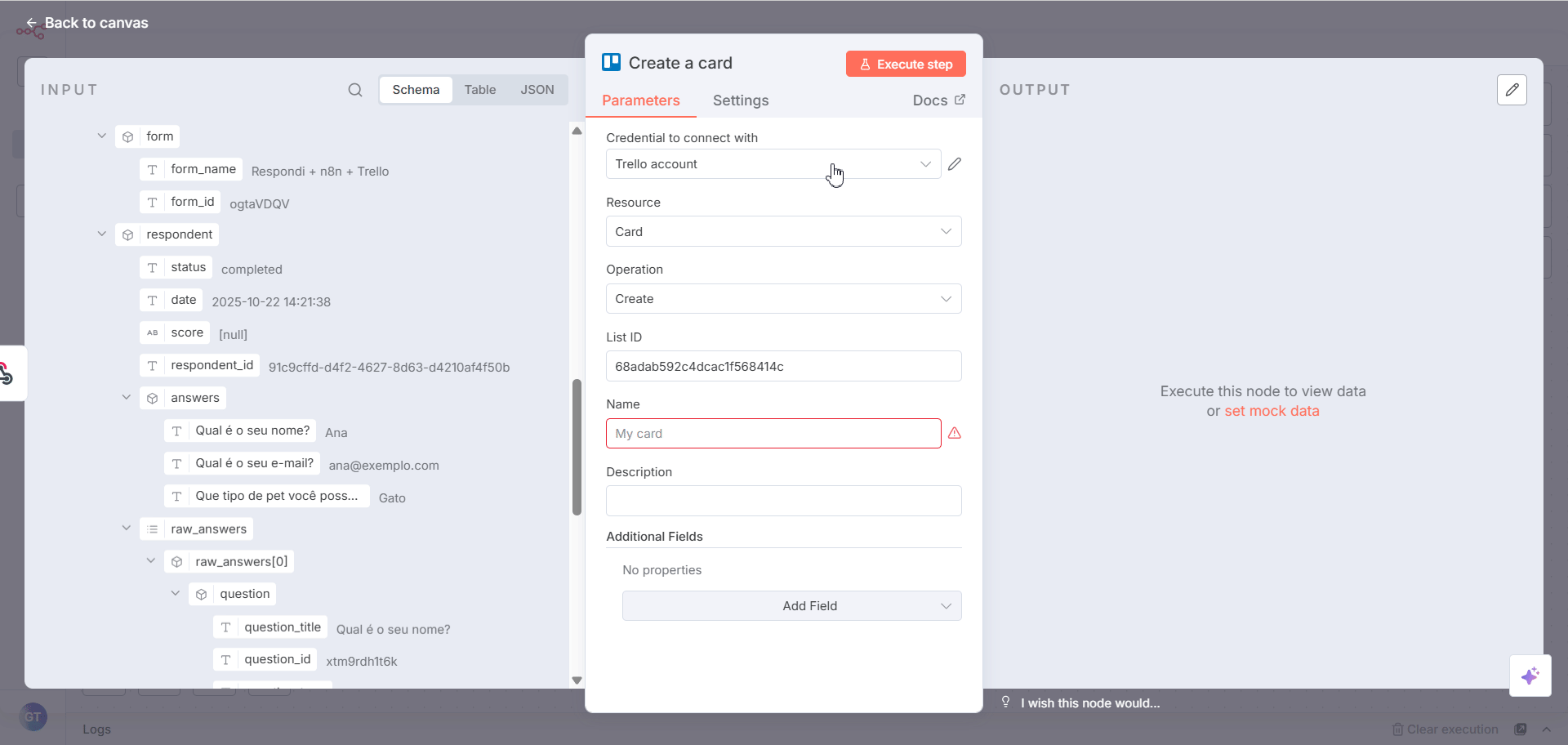 - Quando finalizar o mapeamento dos campos, clique em "Execute step";