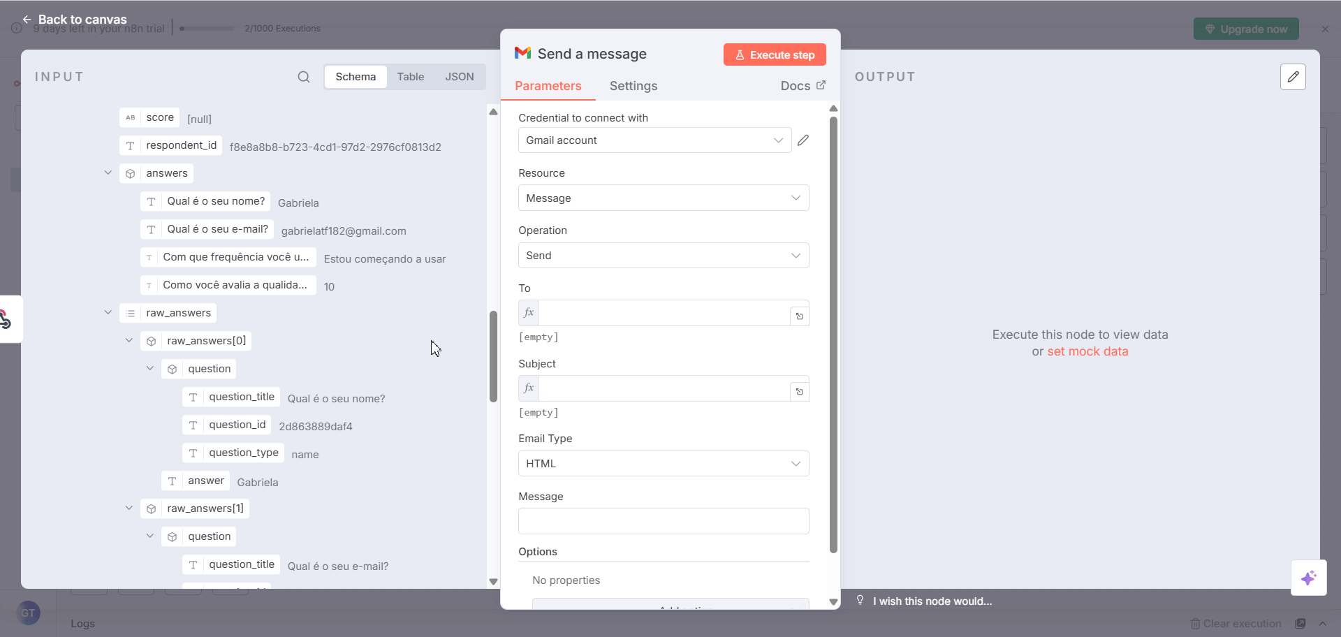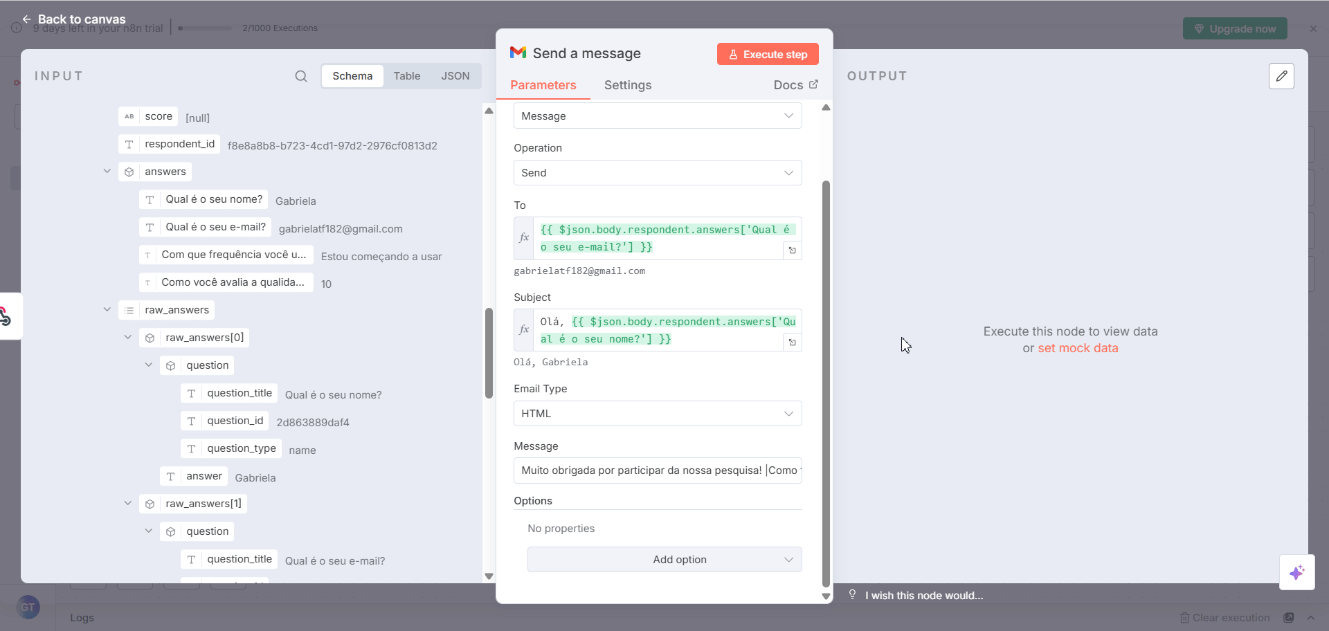 - Quando finalizar o mapeamento dos campos, clique em "Execute step";
