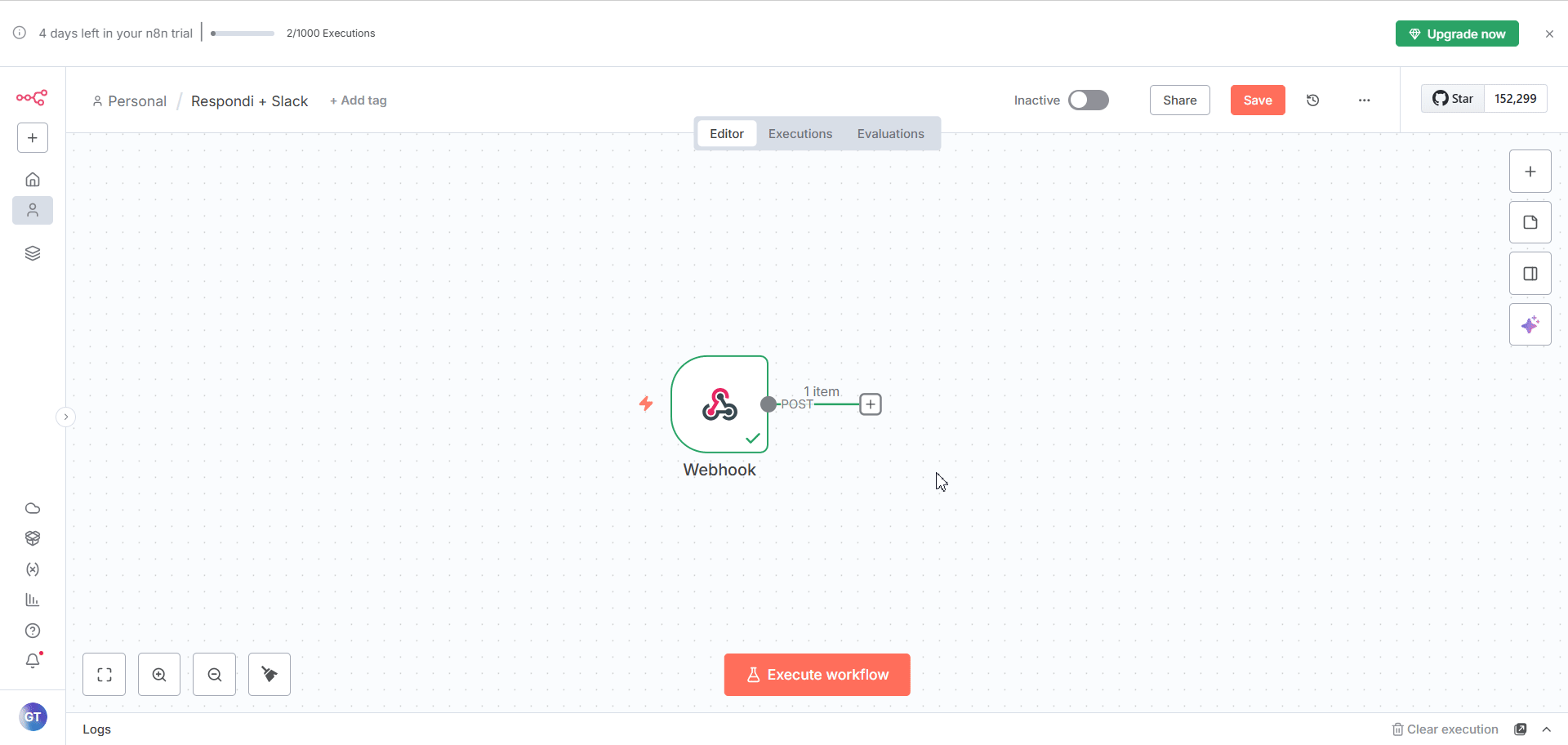 Caso ainda não tenha feito, o primeiro passo para a integração é configurar um webhook: Como configurar um Webhook pela n8n