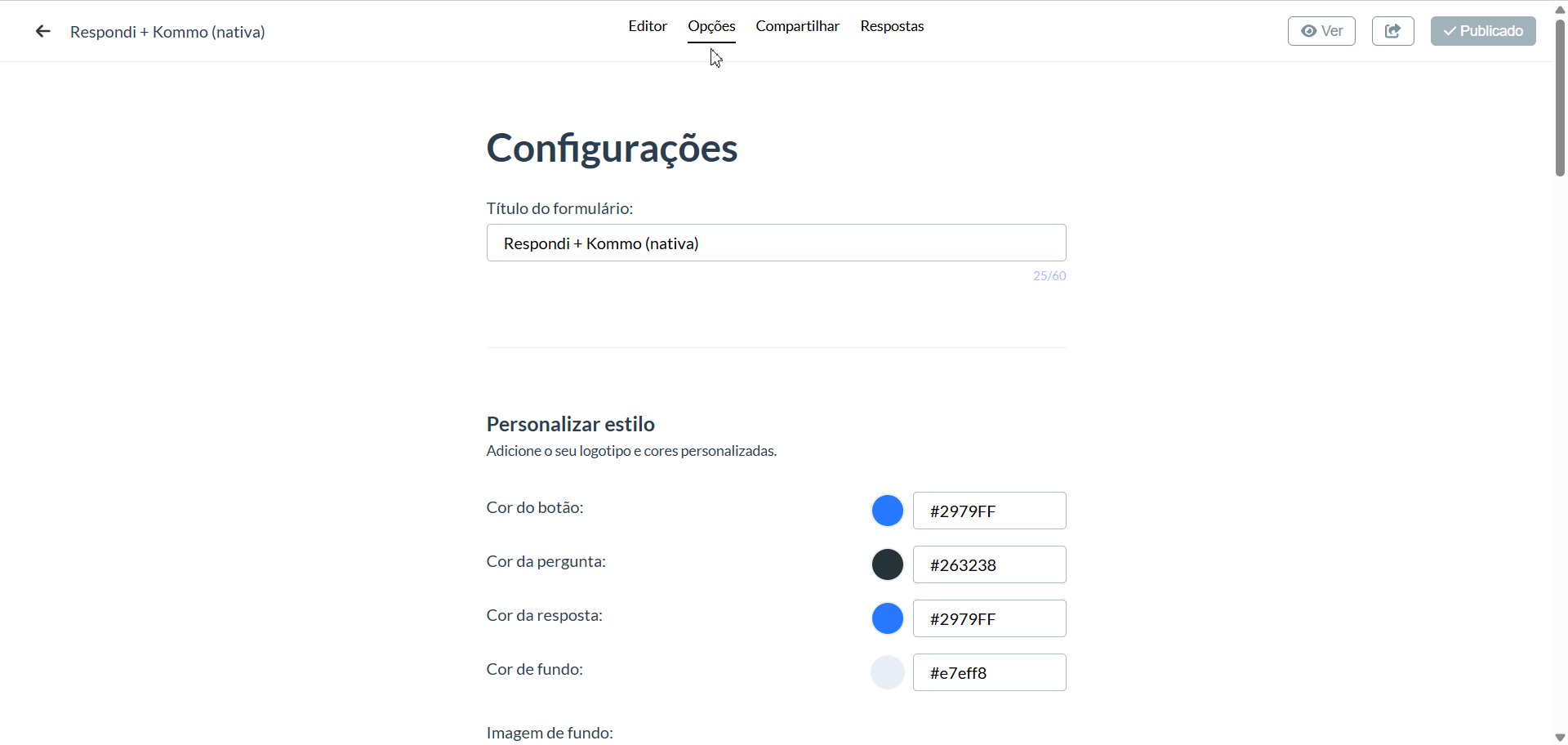 - No formulário desejado, clique na aba Opções, localizada na parte superior da sua tela;