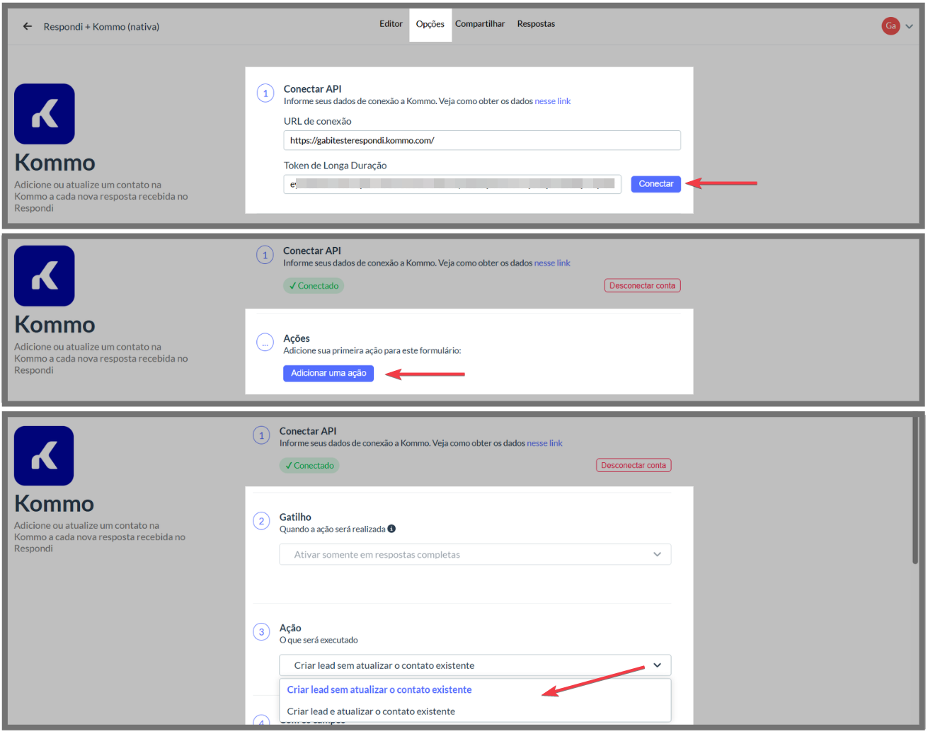 Como conectar o Respondi à Kommo para criar leads e contatos automaticamente