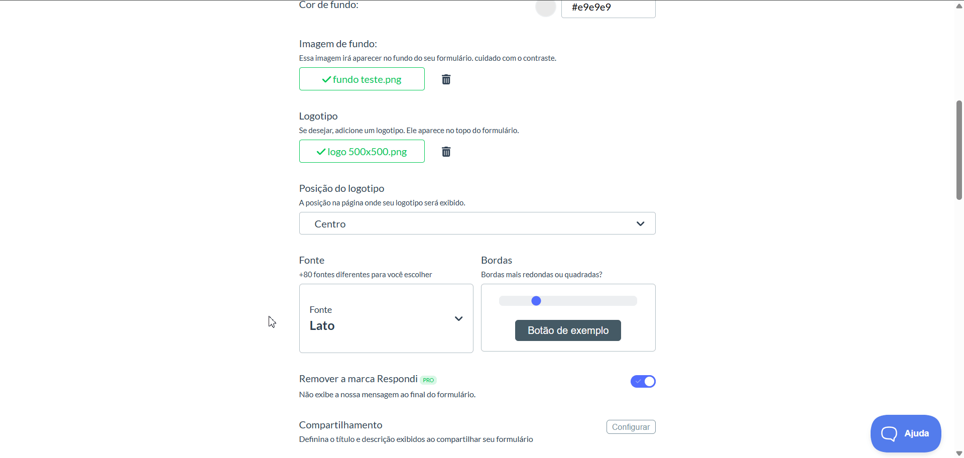 - A partir do plano Pro, habilite a opção de "Remover a marca Respondi" do seu formulário;